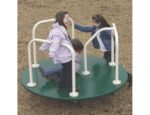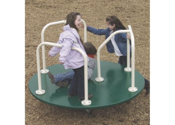 This 6 feet merry-go-round has a one piece and heavy-duty base that is designed for long-term use in schools, commercial applications, parks, and even backyards. It has the capacity to seat eight children and is used for kids’ aged 5 and up. For controlling the speed, a speed governor has been installed on it. Moreover, it has painted pipes that are used as handrails. The base and rail can both be customized to your personal preference of available color. The base is limited to Red or Green.