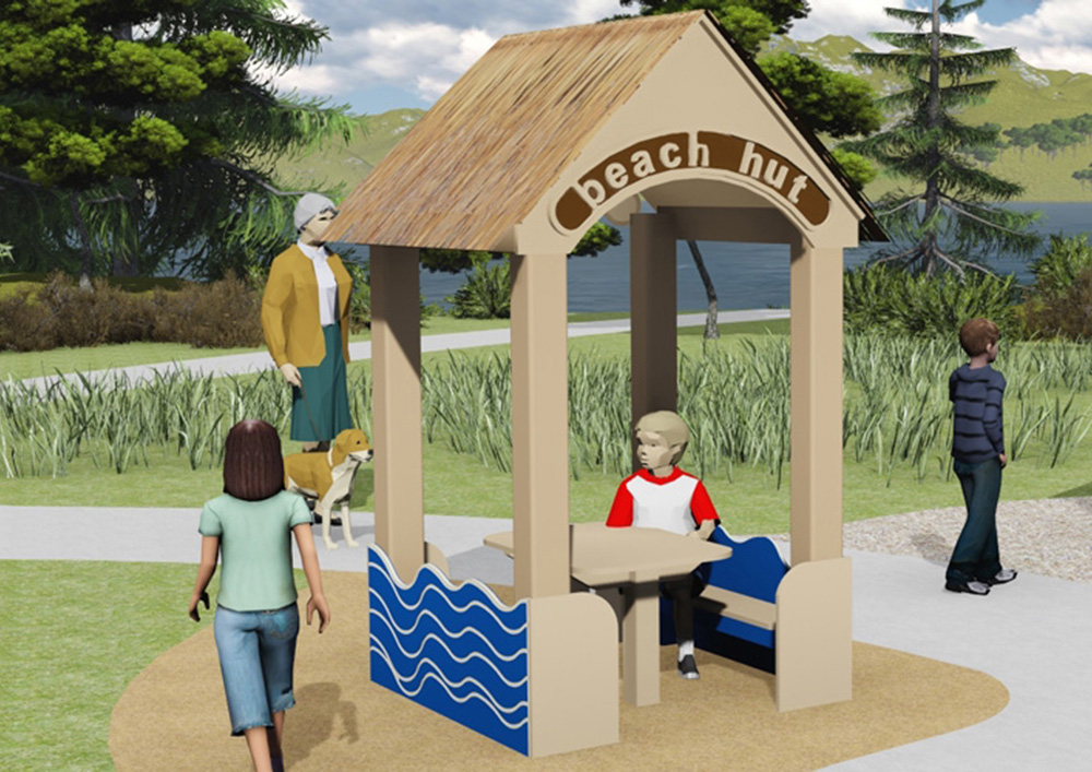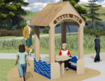The Beach Hut contains two benches which face each other, and a small picnic table in between them. The Wave Hut Walls on the outside, the sandy color of the recycled plastic posts and the tropical look of the Thatched Village Roof of the hut give it a nice seaside appearance. This is a perfect place for kids to chat, play board games, color pictures, or eat snacks.