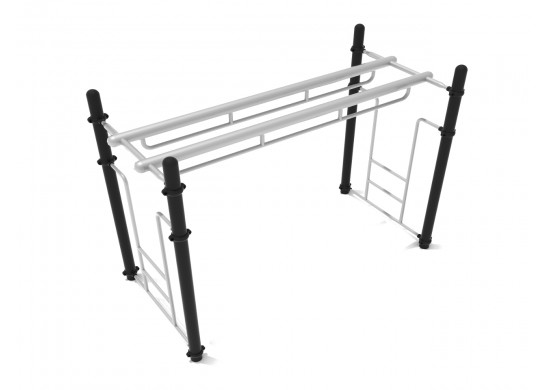 The Double Parallel Bar Ladder contains two overhead bars which are in line with each other. The long parallel bars allow children to move at their own pace, since they can reach as far forward as they are comfortable, rather than having to reach for the next rung each time. Since there are two bars, kids can hold onto one of them with each hand, to better distribute their weight. They can also move back and forth from one bar to the other, or even allow others to pass them as they climb. This expands the Double Parallel Bar Ladder’s maximum capacity, allowing more children to enjoy playing on it at the same time.