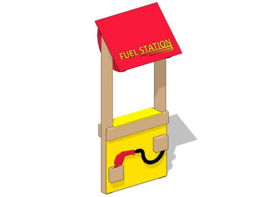 Tricycles, toy cars, and imaginary vehicles don’t actually need real fuel to operate, children can fill up with as much pretend fuel as they need at the Gas Station. This versatile themed play structure goes great in any play area, but especially in areas with a trike track, or a transportation theme. It is available with two, four, or six posts.