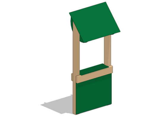 This simple and versatile village structure acts as a blank canvas upon which children can project their stories and imaginative play. Kids can use our Market 2 Post to create a lemonade stand, act out a farmers market, or construct a pretend library. The possibilities for exploration and entertainment are virtually infinite. The Market 2 Post includes a Half-Village Roof with graphics and a Storefront Panel with graphics, and can be installed to be freestanding or attached to an existing wall.