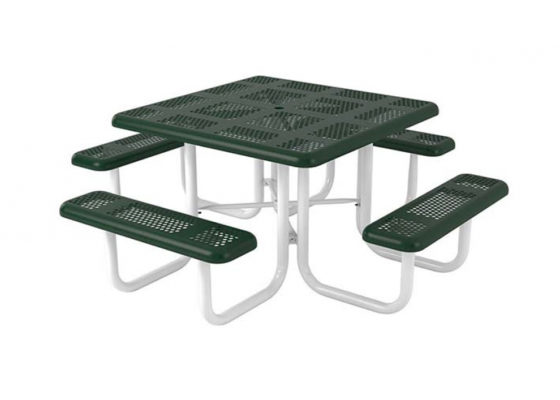 Our Perforated Square Portable Table features a modern frame style with a great metal design for an inviting look. With its portable design, this picnic table is great for any location where comfortable and inviting seating is needed.