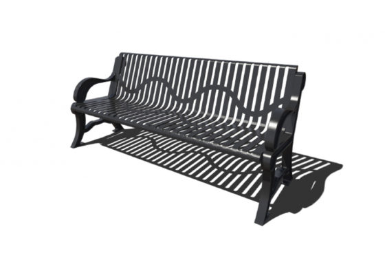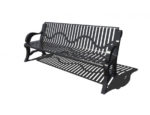This attractive and durable commercial-grade bench is suitable for any park. Place it on a walking path, sidewalk, or grassy area for visitors to enjoy on any beautiful day. The seat and back are formed with recycled plastic planks in the color of your choice, and rest on a 3″ square tubing powder coated frame. Choose in-ground or surface mounting. This bench measures 6′ in length. Contact us for your custom bench quote today!