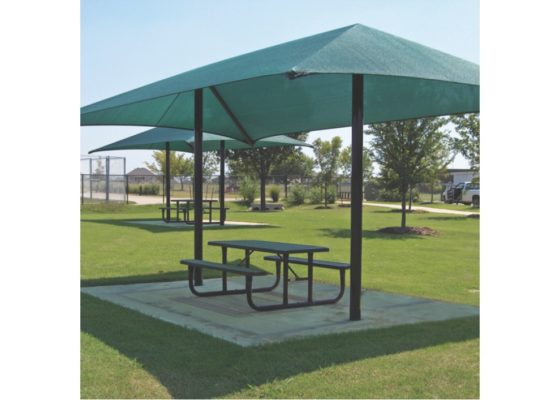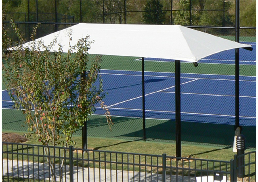 Rectangle Dual Column Fabric Shade structures use heavyweight long lasting fabrics and high gloss powder coated brace structures available in a broad range of colors. They are found with glide or common elbows. Glide elbows allow simpler elimination and shade fabric re-installation to avoid damage through inclement weather. Rectangular dual column fabric shade structure delivers effective economical shade prevention. They are ideal for concession areas, dugouts, bleachers, playgrounds, pool decks, water parks and picnic areas.