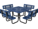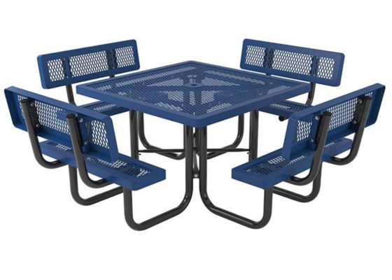 The Regal Square Portable Table with Seat Backs adds a distinctive look to any outdoor space. With its sturdy design, this table is great for any location such as a sports park or an outdoor cafeteria at a school.