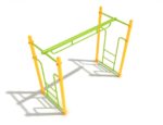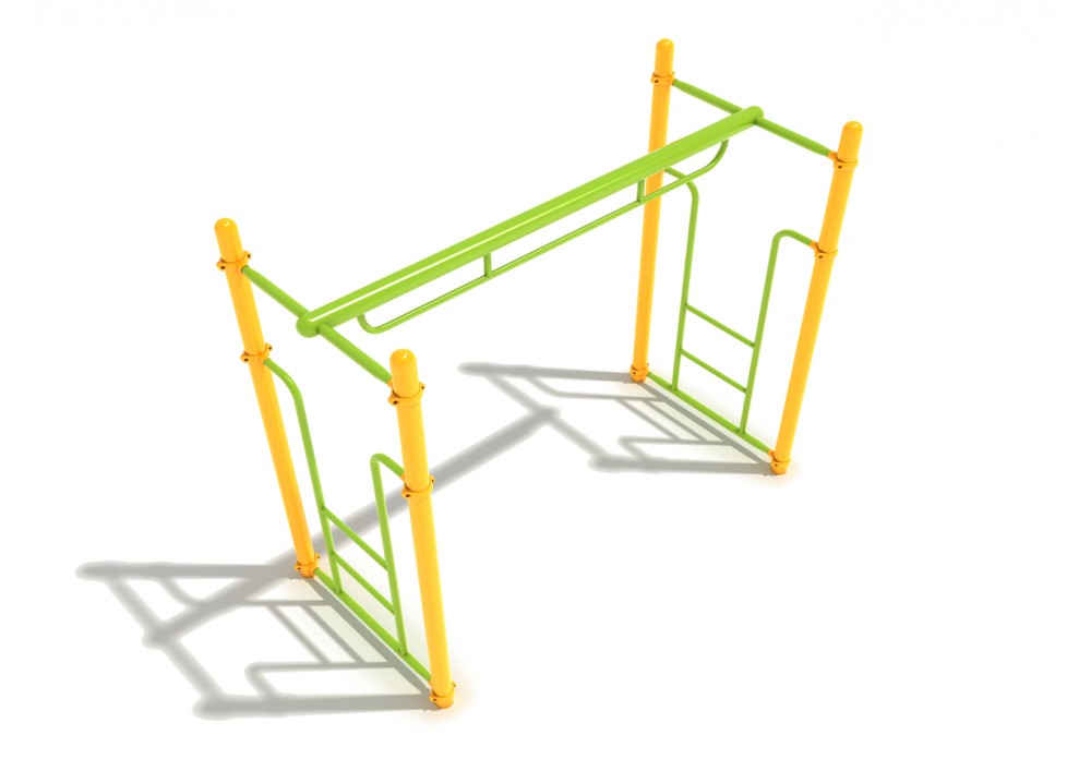 The Single Parallel Bar Ladder is a unique new twist on the classic style of overhead climber with multiple parallel bars. Instead, it uses a single sturdy bar which is in-line with the direction children move as they cross it. Users will not have to keep reaching for the next bar or rung ahead of them. Instead, they only have to keep moving by reaching only as far ahead as is comfortable for them. It also exercises some different muscles in the shoulders and upper arms. By being unlike any overhead climber that they are familiar with, the Single Parallel Bar Ladder is sure to be an interesting and novel activity that kids of all ages will be interested in.