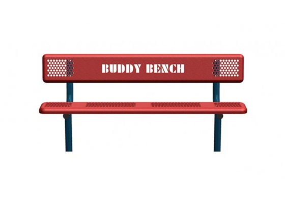 Sometimes children need an easier way to engage with each other. Our 6-foot Standard Perforated Buddy Bench could be your ideal solution. A buddy bench is a safe and comfortable seating choice that allows one child to invite another child to sit and chat. This zone becomes a safe haven for those kids who are very introverted and could use added encouragement to make new friends. This bench is made of tough steel and coated with textured polyethylene in a variety of color options. Our standard design features “Buddy Bench” lettering.